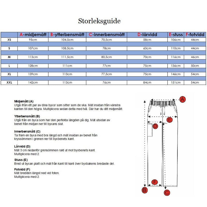 - Modell: Rak unisexmodell. Dras åt med band i midjan.